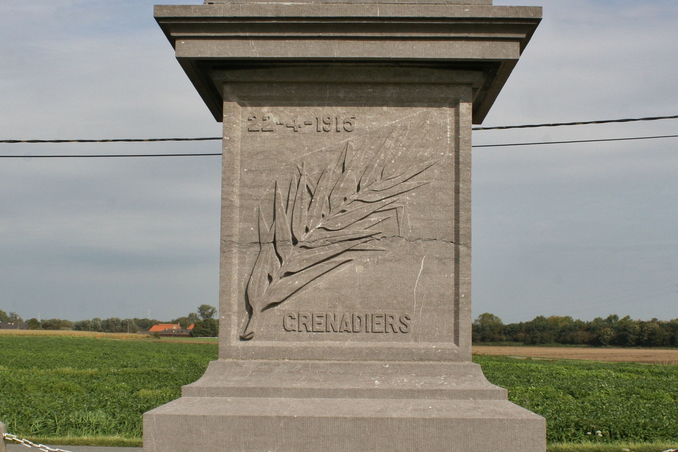 Hot on the heels of our brief stop in Lizerne, here we are a little under half a mile north of the village, and this is the memorial to the Belgian Grenadiers who died during the first German gas attacks at the start of the Second Battle of Ypres.
